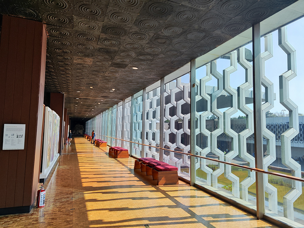 Это длинный крытый коридор (пасильо), окружающий центральный внутренний двор музея.
