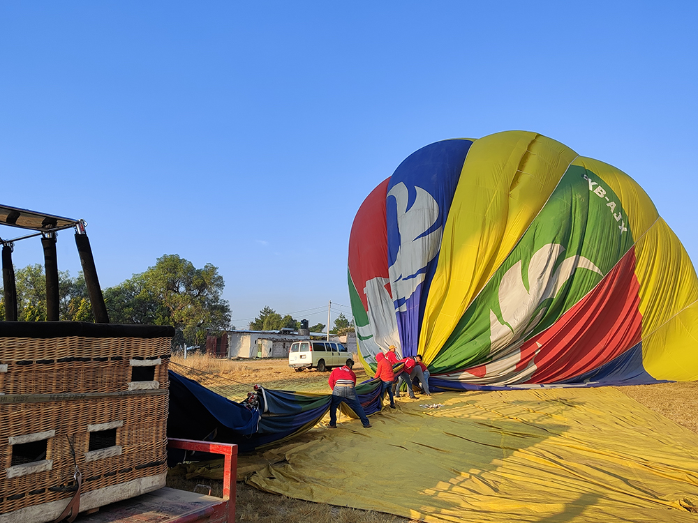 Чтобы взлететь, нам помогала команда из 7 молодых мексиканцев. Всё делали слаженно, было видно, что ребята этим занимаются регулярно.