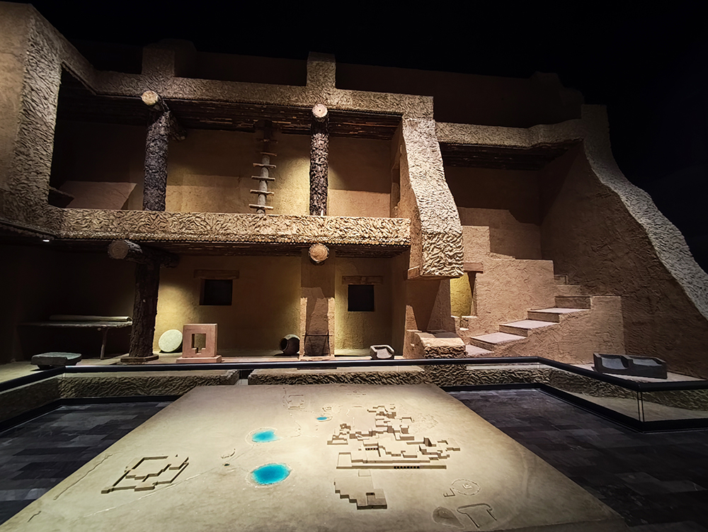 Макет доиспанского поселения с реконструкцией его части и архитектурными элементами.