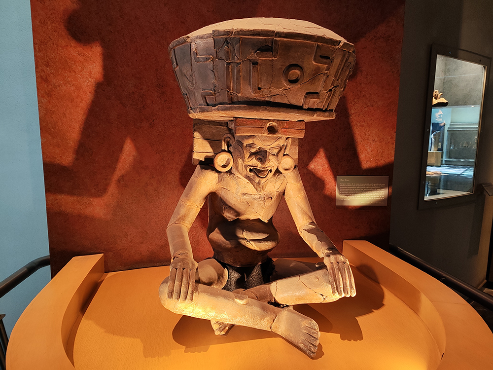 Каменная скульптура «Улыбающийся человек» (hombre sonriente) культуры уастеков (huasteca), классический период (примерно IX–XII вв. н. э.). Фигура изображает молодого человека с широкой улыбкой, обнажающей зубы, в характерном головном уборе с боковыми «крыльями», с поднятыми руками и богатым рельефным орнаментом на груди и поясе. Одна из самых известных и радостных фигур доколумбовой мезоамериканской скульптуры.