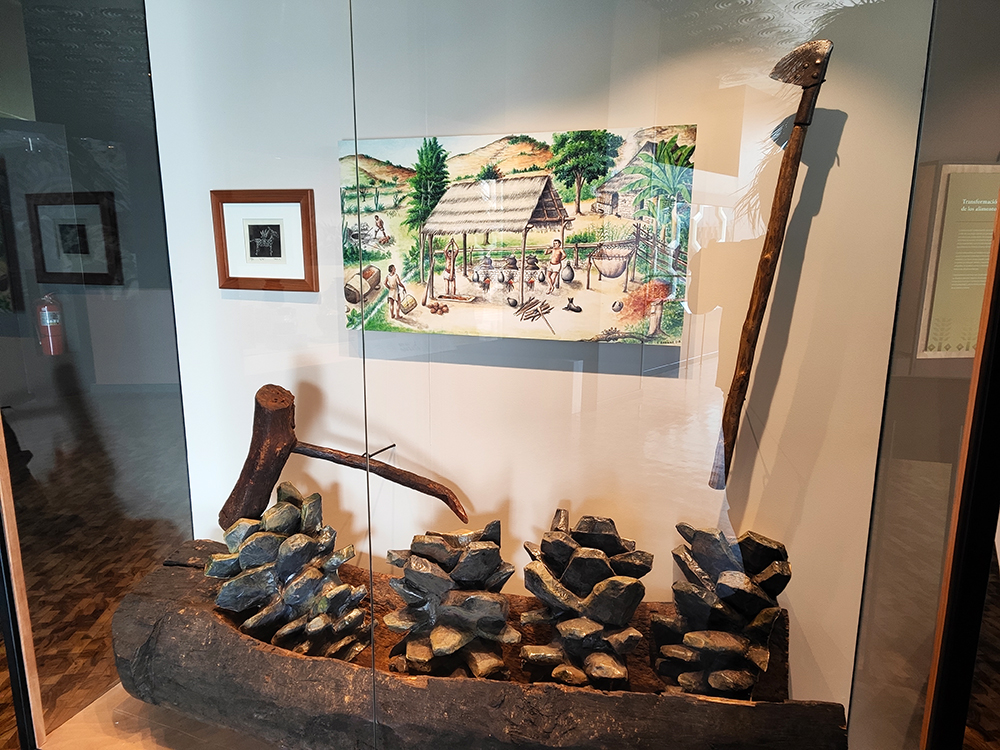Экспонат демонстрирует традиционные мексиканские сельскохозяйственные орудия доколумбовой эпохи.