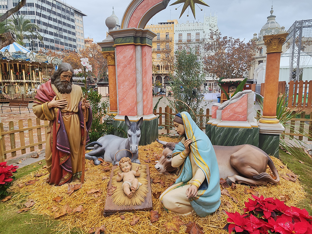 В Испании, особенно в Валенсии, установка вертепов в общественных местах — давняя рождественская традиция, символизирующая христианские корни праздника, культурное наследие и единение сообщества. Муниципалитет Валенсии специально возобновил эту практику несколько лет назад, чтобы подчеркнуть валенсийскую идентичность.