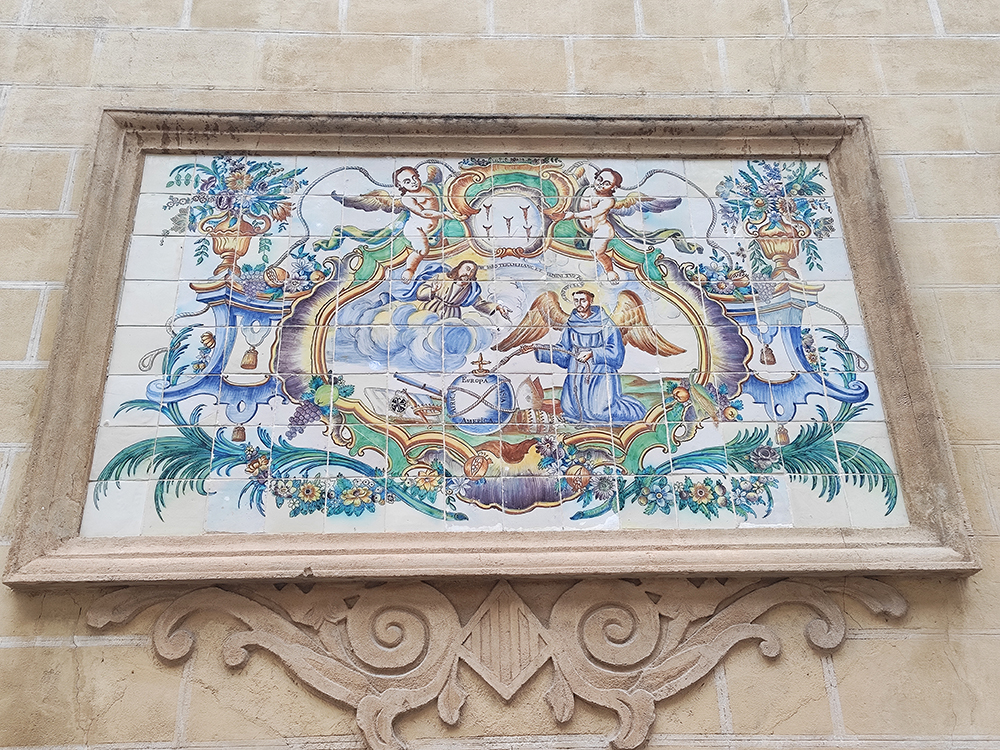 Панно из азулейжу (традиционной испанской керамической плитки, часто с росписью в сине-зелёных тонах), типичное для Валенсии и региона Валенсийского сообщества. Такие декоративные плиточные панели (панно) часто украшали фасады церквей, домов или общественных зданий в XVIII–XIX веках.