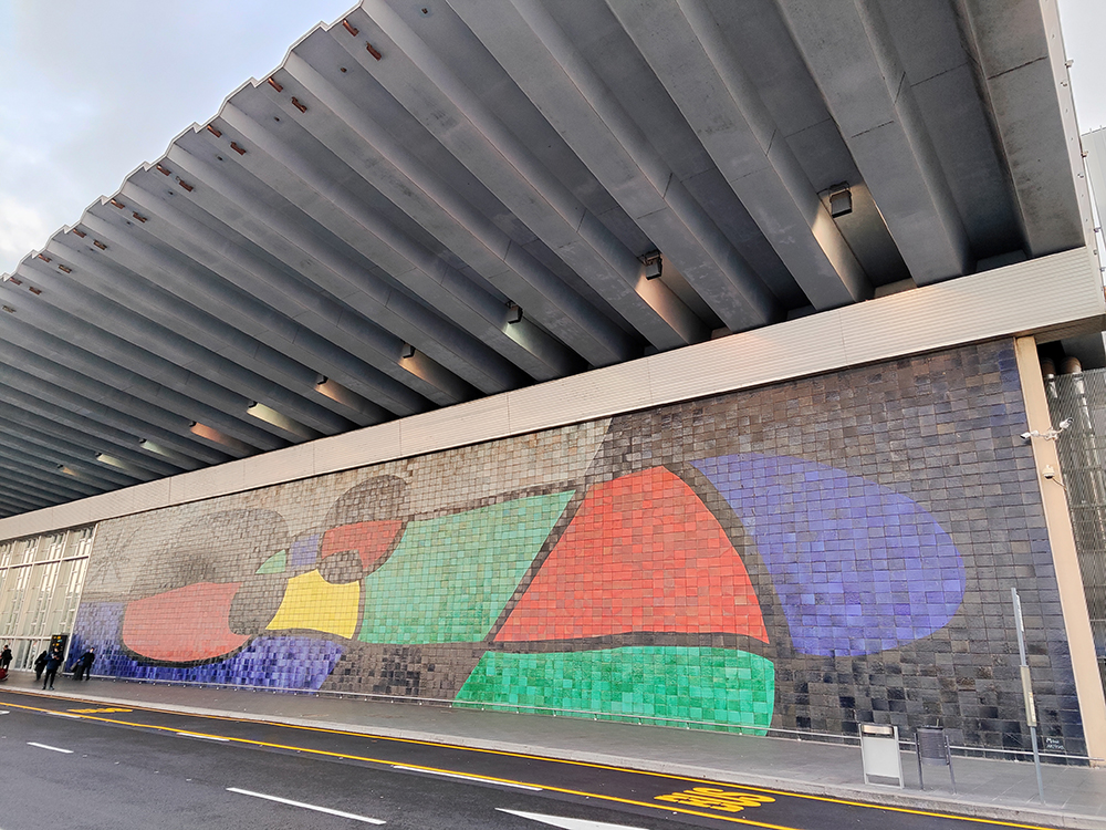 Станция метро. На стене находится большая скульптурная композиция — рельефный мурал работы Josep Maria Subirachs, известного своими абстрактными и геометрическими формами (он также автор частей фасада Sagrada Família).