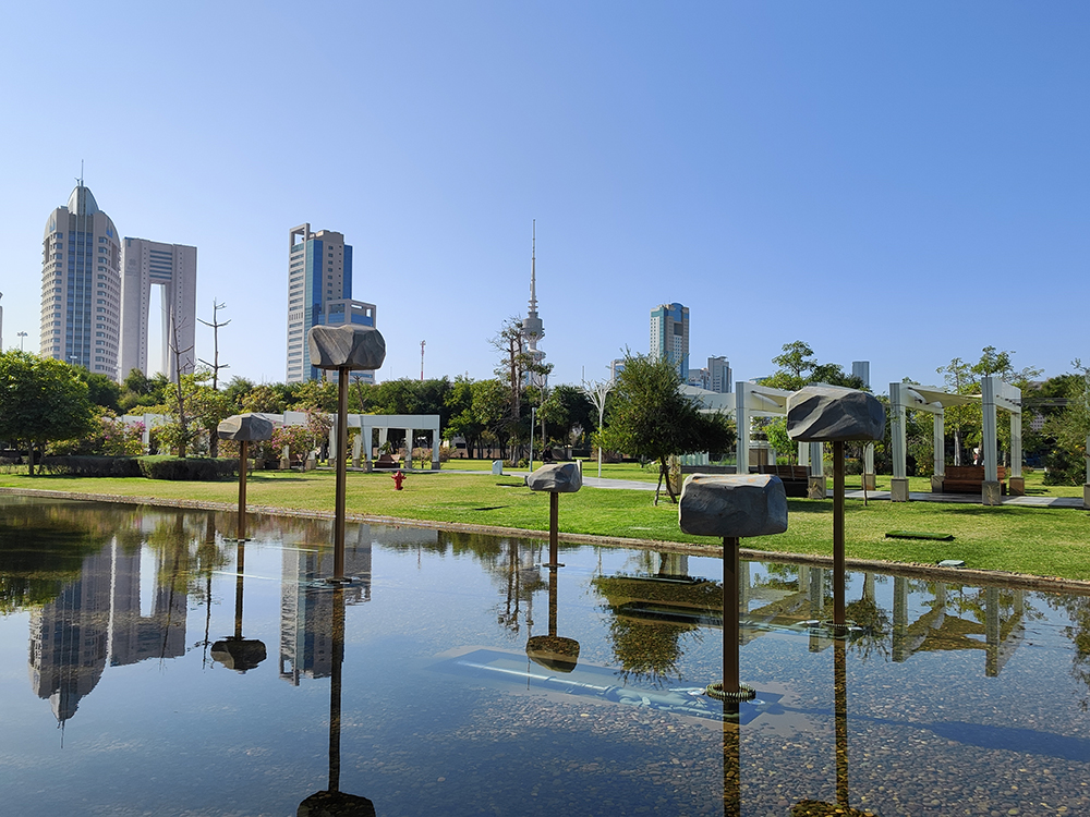 Скульптурная инсталляция под названием “Raising Our Sails”. Камни часто символизируют стойкость, землю Кувейта, природу пустыни и непоколебимость нации (особенно в контексте парка, посвящённого мученикам/шахидам — жертвам войны 1990–1991 годов).
