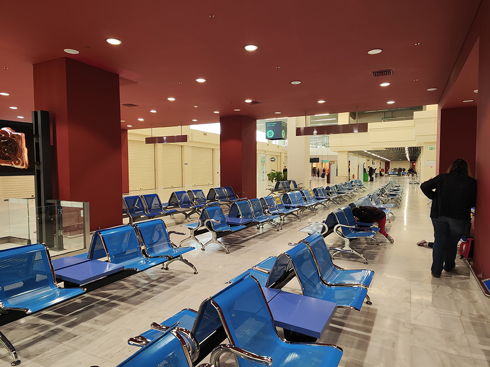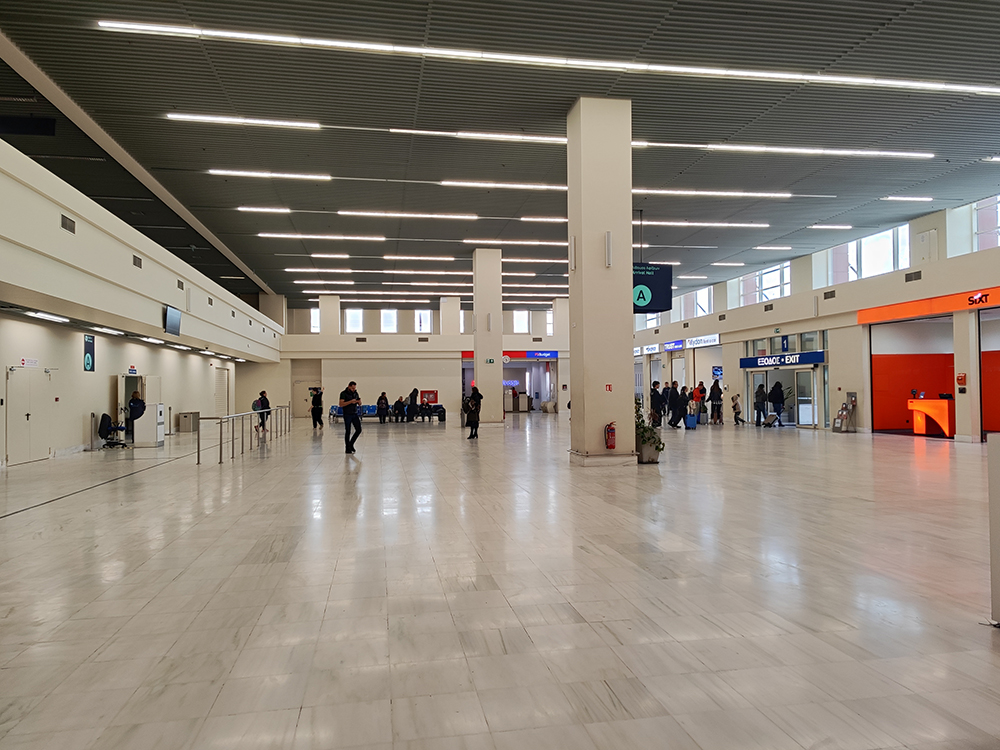 Прилетели. Летели примерно час и 10 минут. Недалеко, билеты дешевые, надо лететь. Это аэропорт Ханьи.