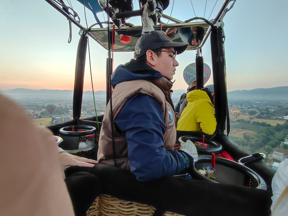 Этот мексиканец управлял шаром. Чаще всего нажимал специальный рычаг сверху, чтобы “поддать” горячего воздуха и шар плавно поднялся еще выше.