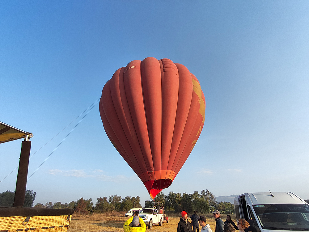 Доехали. Перед этим “на базе” позавтракали, взвесились (чтобы организаторы могли распределить людей в каждой корзине), нас собрали в группы для различных шаров, по 8-12 человек и мы поехали на поле, откуда осуществляется взлет.