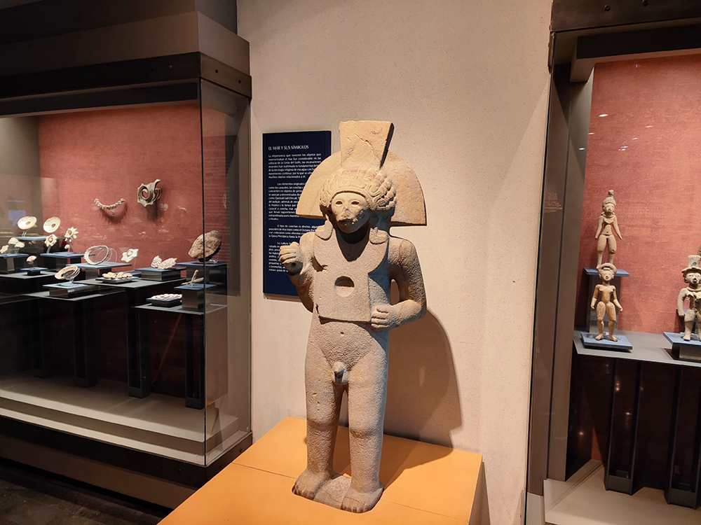 Каменная скульптура «Улыбающийся человек» (hombre sonriente) культуры уастеков (huasteca), классический период (примерно IX–XII вв. н. э.). Фигура изображает молодого человека с широкой улыбкой, обнажающей зубы, в характерном головном уборе с боковыми «крыльями», с поднятыми руками и богатым рельефным орнаментом на груди и поясе. Одна из самых известных и радостных фигур доколумбовой мезоамериканской скульптуры.