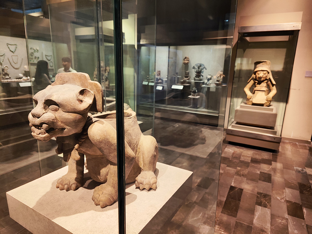 Витрина с подлинными древними керамическими фигурами и сосудами доколумбового периода.