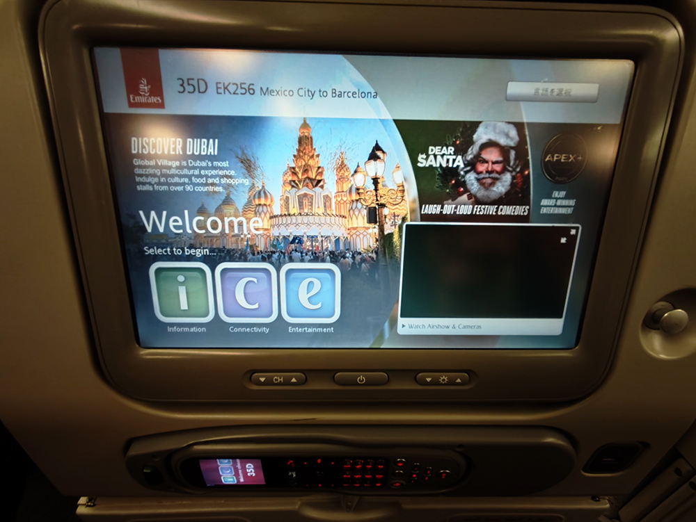 Летели мы часов 11 (впрочем, как и в Мексику, из Лондона). Чтобы не умереть со скуки, был вот такой интерактивный экран с пультом ниже для управления. Я просто тыкал пальцем.