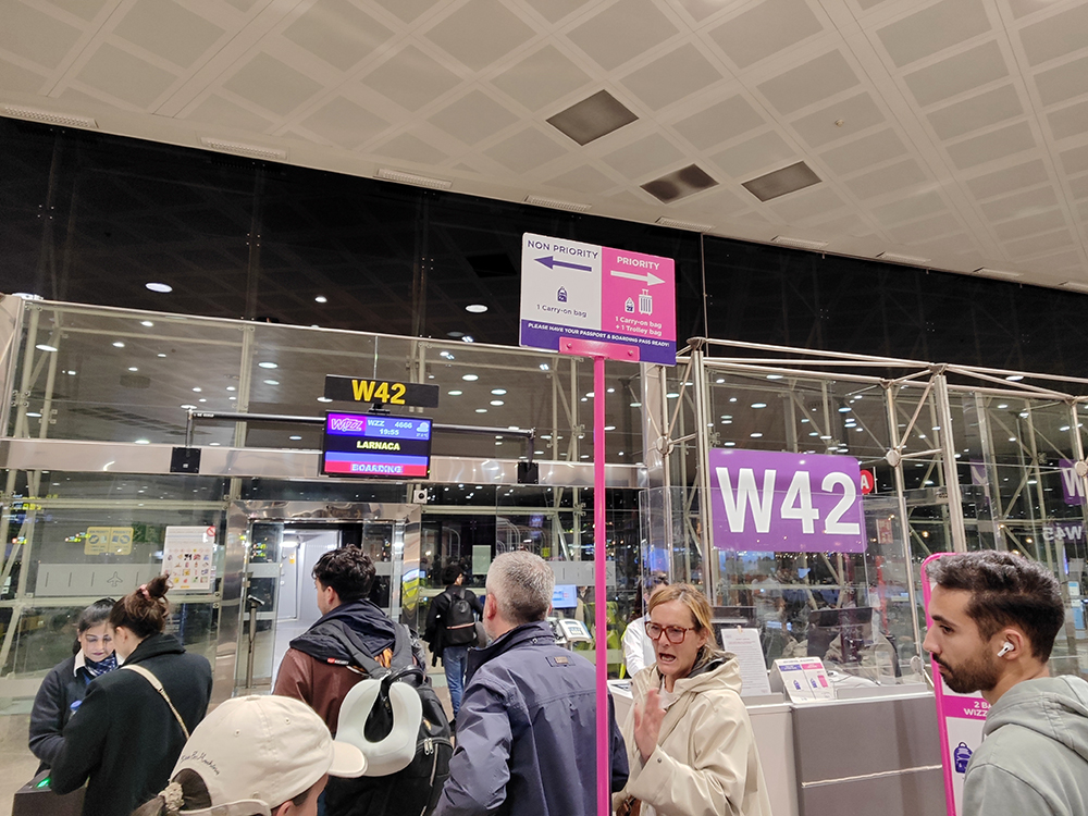 Гейт, откуда мы полетели в Ларнаку. Я был тогда голодный, еды с собой было мало, наспех купил сэндвич в duty free и встал в очередь, чтобы не опоздать.