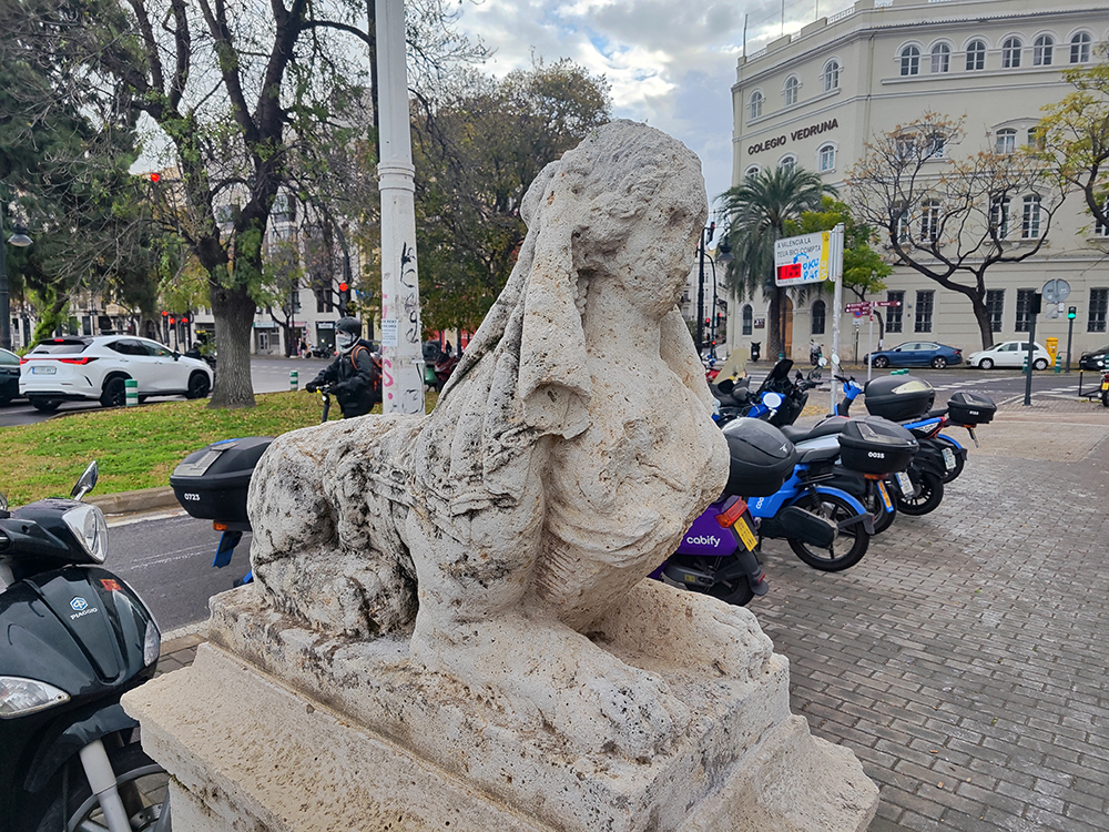 Это статуя сфинкса у входа в Colegio La Verduna, частную школу.