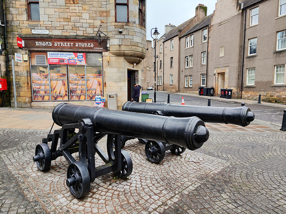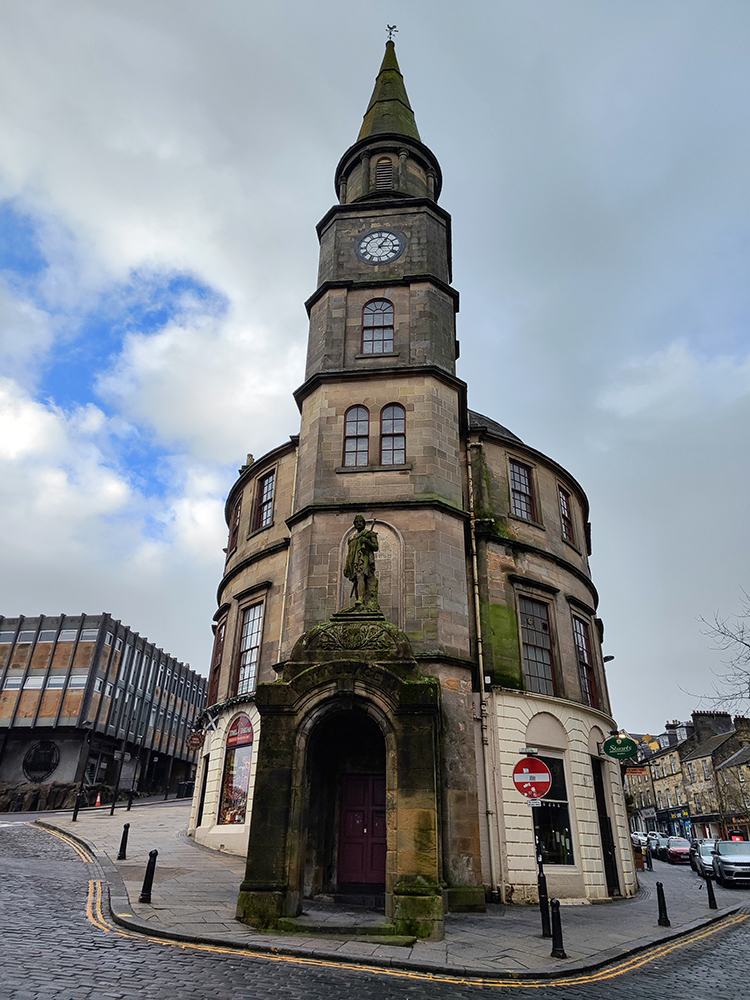 Высокая башня с часами — это Tolbooth (Толбут), бывшее здание городской администрации, суда и тюрьмы.
